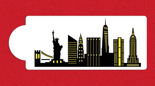 Studio : Designer Stencils Publisher : Designer Stencils Binding : Kitchen Product Description Use this silhouette stencil to create a detailed skyline of New York City. Set includes three pieces: 1) The Skyline cutout; 2) The solid silhouette inside piece if you want to use that for a template for cutting your fondant or gumpaste; and 3) A second overlay stencil with the window and scene detail. Measures 4.4"H x 9.5"W. Made from durable 10 mil food-grade plastic for repeated use. 0