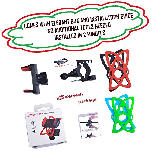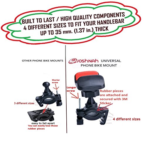 JoshNAh Bike Phone Mount , Universal Cell Phone Holder for Motorcycle & Bicycle Handlebars , fits Iphone 6 plus , 7 plus , Samsung Galaxy s7 edge , s6 s5 , LG , Note
