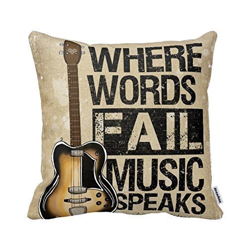 Decorbox Where Words Fall Music Speaks Quote Throw Pillow Case Vintage Cushion Cover Guitar Pillowcase Twin Sides (16x16, color12)