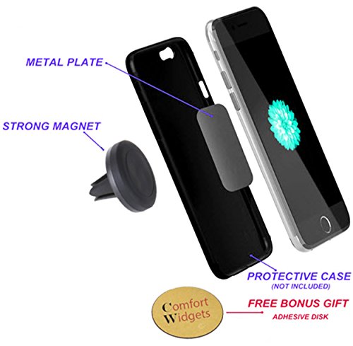 Car Mount Air Vent Cell Phone Holder. One Fits All. iPhone-Samsung-Google Nexus-LG-HTC-Sony-Motorola. Portable Adjustable-Does Not Obstruct Your Windshield-Strong Grip/Magnet-By Comfort Widgets(TM)