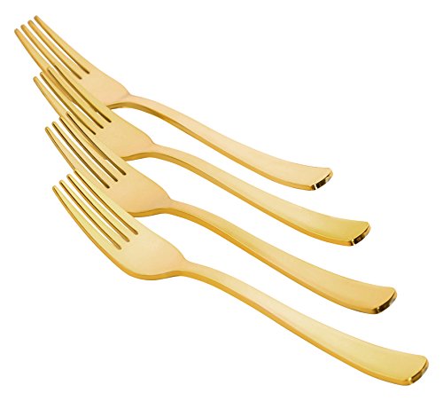 Exquisite Plastic Cutlery, Premium Quality Silverware "Gold look alike"Heavy Duty Plastic Forks - 120 Count (Forks, Gold)