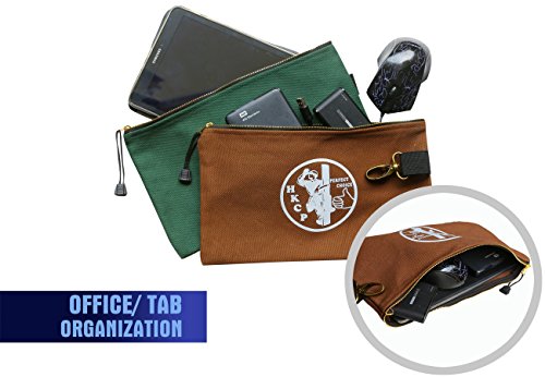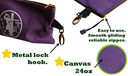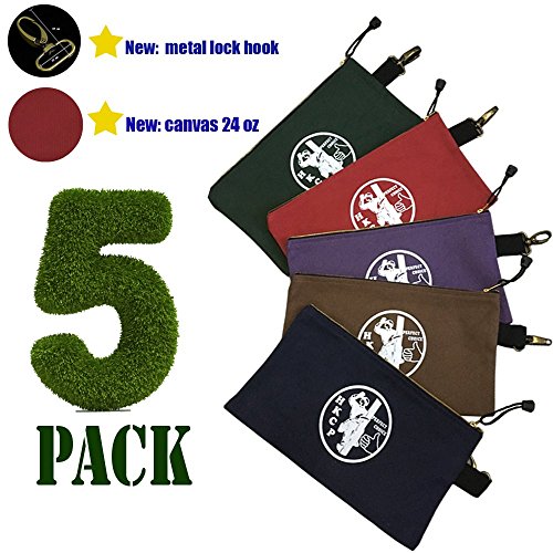 5 Pack - Heavy Duty 24 oz- Canvas Tool Bags with Dependable Metal Zippers- Metal Lock Hook ,Organize Smarter & More Efficiently with Durable Storage,12.5” x 7” Pouch, Easily Sorts Supplies