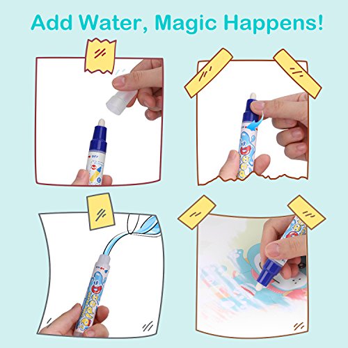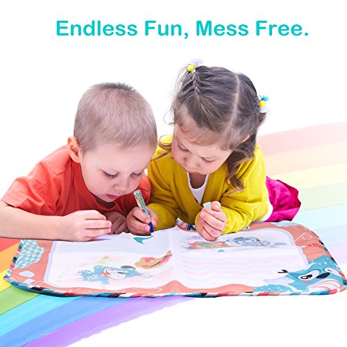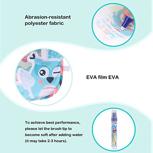 MAGIC WATER PEN - Pen with water draws on the blank aquadoodle will bring out the colorful doodle. No more messy ink or pigment needed.