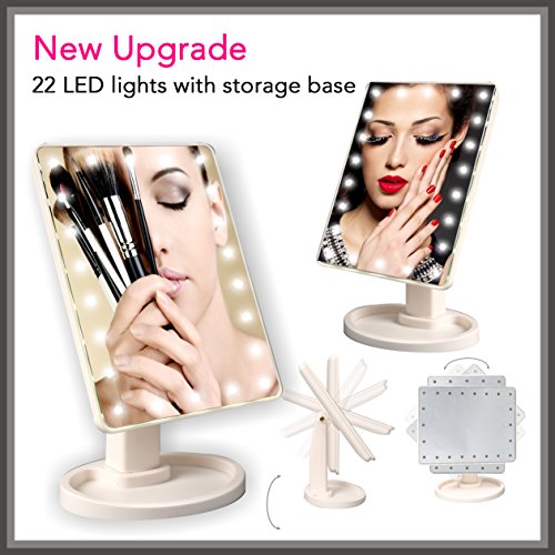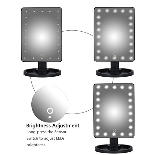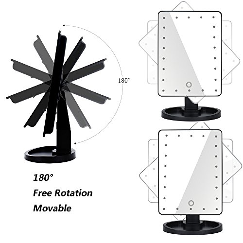 Aimimami LED Makeup Mirror, Touch Screen 22 LED Lighted Makeup Mirror, Rectangle Desktop Cosmetic Mirror with Removable 10x Magnifying Mirror(Batteries not Included) (Black)