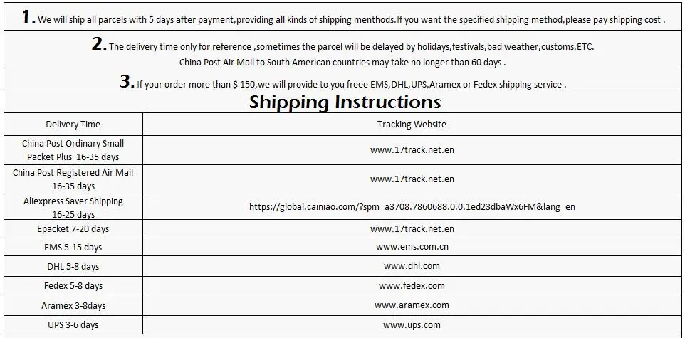 Shipping:Order more than 130$,free shipping by DHL,Fedex