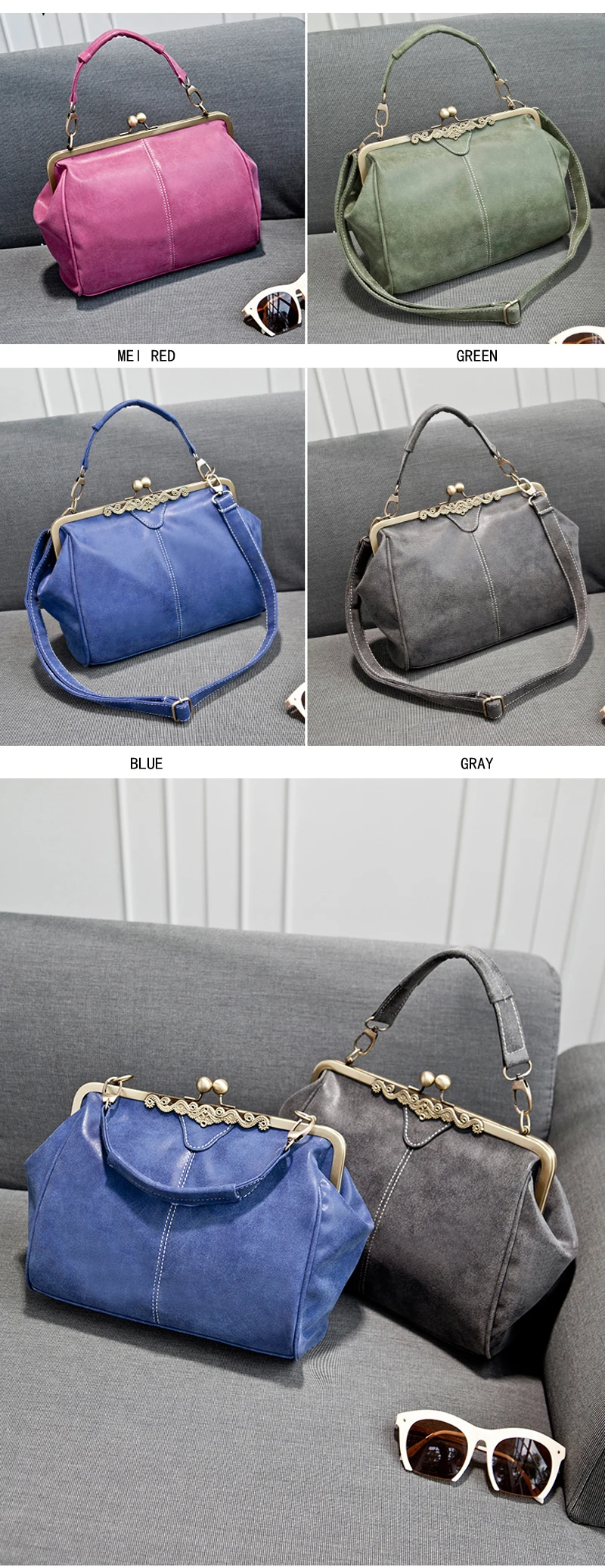Handbags color:Blue / Gray / Mei Red / Green