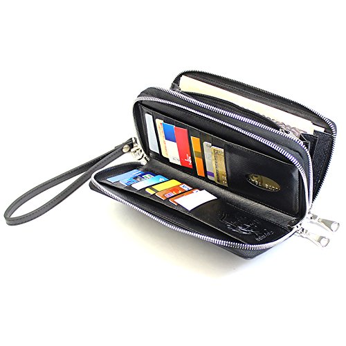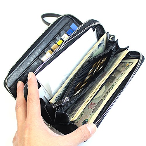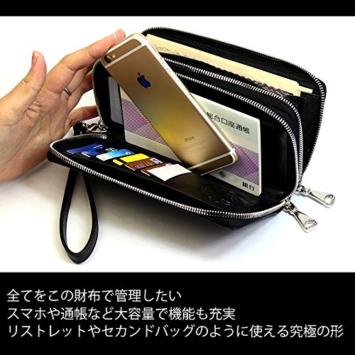 -. Feature : カラー:ブラック / サイズ(約):L19×W10.5×D4.5[cm] 重量/約250g / 素材:イタリア製サフィアーノレザー 裏地:ポリエステル / 仕様:ファスナー付き気室2気室、(左側収納ポケット2つ、カード入れ部分7枚×2カ所)、(右側収納部小銭入れファスナー付き×1、札入れ×4、小物入れ×1)、リストレット付き / 付属品:保存袋