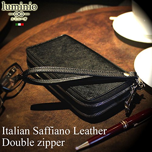 -. Title : (ルミニーオ)luminio 長財布 札入れ ラウンド ダブルジップ イタリアンレザー サフィアーノ 本革 ブラック [ブランド]ludove1219a