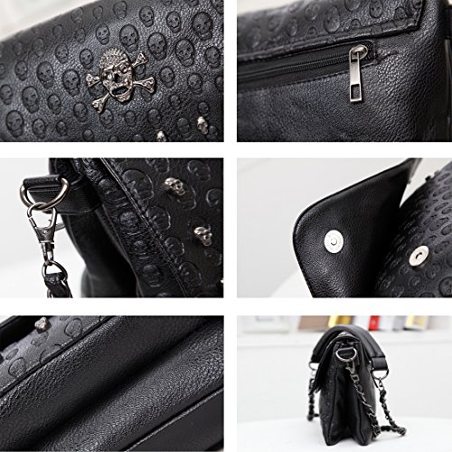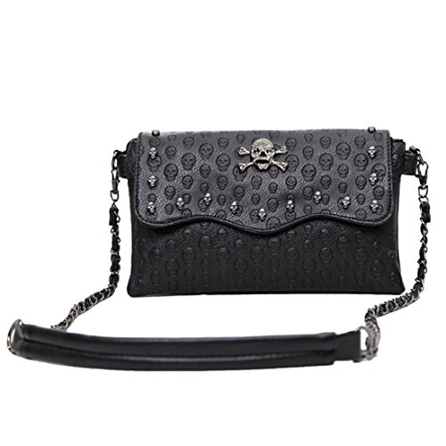 SEALINF Women’s PU Handbag Rivet Shoulder Bag Crossbody Chain Bag Skull Purse