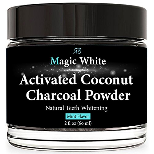 Product Description Radha Beauty Magic White Activated Coconut Charcoal Powder for an all natural teeth whitening treatment. Easy to use with a slight mint flavor to bring you a whiter smile! 0