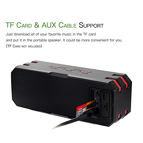 【Easy Connection】3 ways to use the waterproof speaker, it can be connected to your device using the auxiliary port; or by using Bluetooth connection; when you don't want to bring your phone, just let it play music with a TF card,the wireless speakers support up to 32GB TF card