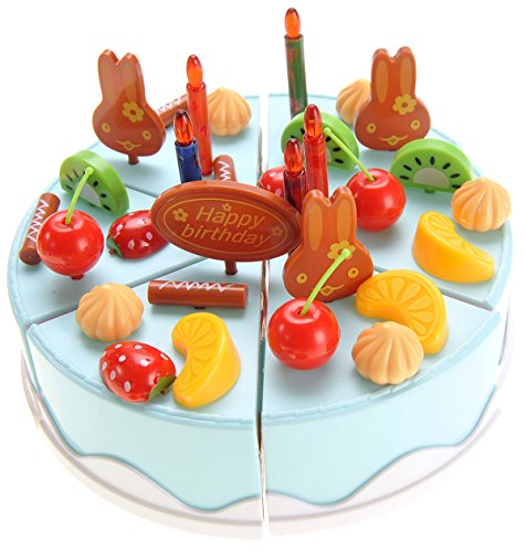 -. Title : PowerTRC Birthday Cake 75pcs Pretend Play Food Toy Set Blue