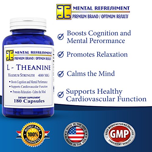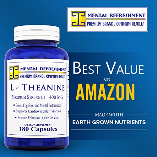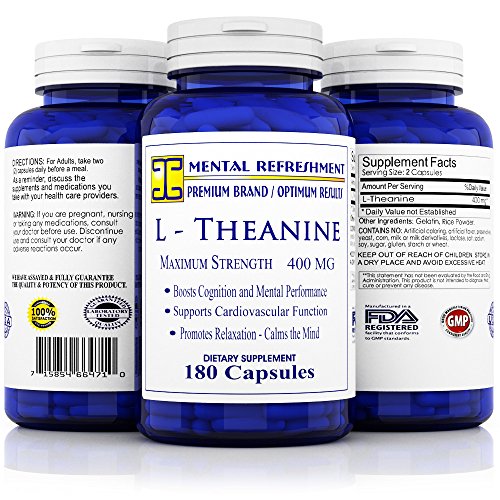 BEST VALUE ON AMAZON - 180 CAPSULES - 400MG per serving - Over 3 month supply. One bottle of our product contains 180 capsules of extra strength L- Theanine providing you with 90 days of our product. Our competitors offer significantly less capsules at lower concentrations. With our Mental Refreshment Brand of L-Theanine you buy fewer bottles saving you money and time.*