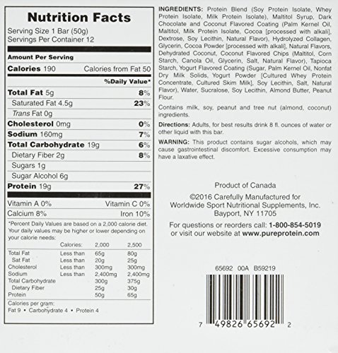Pure Protein Dark Chocolate Coconut Bar, 12 Count