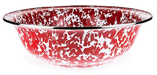 Golden Rabbit RD03 Enamelware Swirl Serving Basin, 13.5" x 4", Red