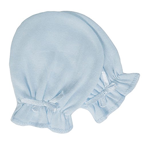 Product DescriptionBambini layette scratch mittens are made from soft 100% cotton fabric. Mittens have soft elastic around the wrists for easy on and off. Newborn mittens stop scratching and thumb sucking0