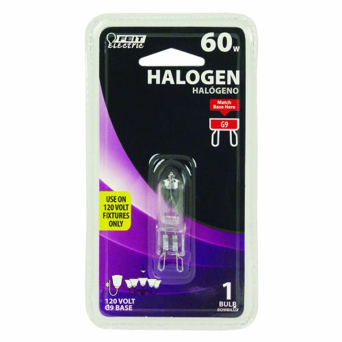 Product DescriptionFeit Electric BPQ60/G9 Halogen Lamp, 60 W, 120 V, T4, Bipin GY8.6, 2000 hr clear, compact and dimmable, 1-3/4" overall length. 2000 average life hours. 120 volt, carded.0