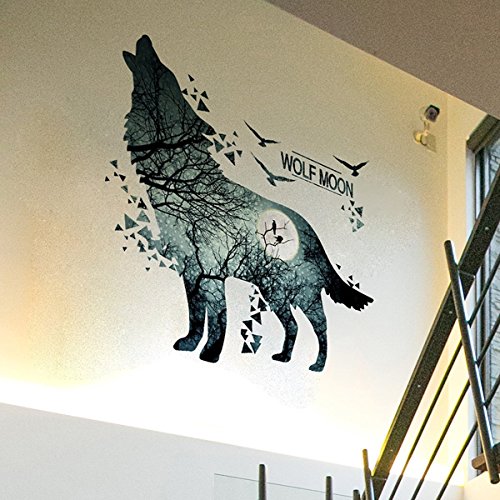 -. Title : YIUHART Wolf Moon Wall Stickers DIY Animal Wall Decal for Kids Rooms Living Room Bedroom Bathroom Home Decor