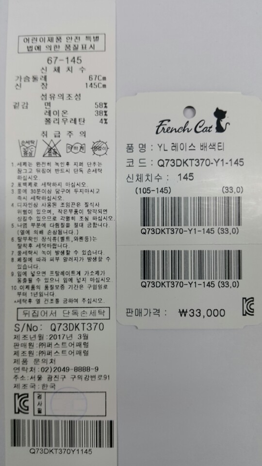 제품소재 : 겉감 면58%레이온38%폴리우레탄4%