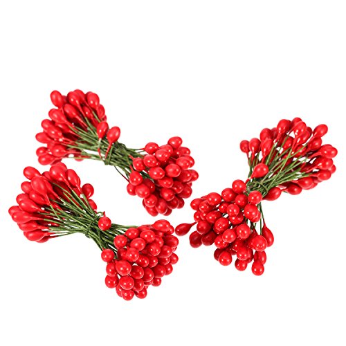 - Package content: the wire stem has 1 berry at each ends, including 150 stems which have 300 pack small red berries in total
