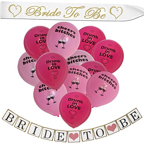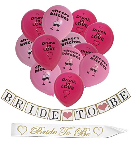-. Feature : BEST BACHELORETTE NIGHT: Decorate your special bachelorette party with these fancy set of shiny latex balloons and make your last night out with friends before wedding the night of your life. Perfect for bridal shower favors, engagement or bridal party and wedding photo props! / VIBRANT COLORS: In classic red and pink girly colors, these eye-catching balloons will spice up your bachelorette night with an assortment of spicy, funny, teasing messages and will be conversation pieces for the bride-to-be and her friends! / SURPRISE THE BRIDE: Offer the bride a bunch of these cute, original balloons and make her bachelorette party a special night to remember! / A PACK OF 12: The package includes 12 high quality uninflated latex balloons, to spice up your last single night! / A PACKAGE WITH BANNER + SASH: The package includes also a stylish 'Bride To Be' BANNER to be used also as an excellent photography prop and a golden letter white satin SASH for the bride that will make heads turn!
