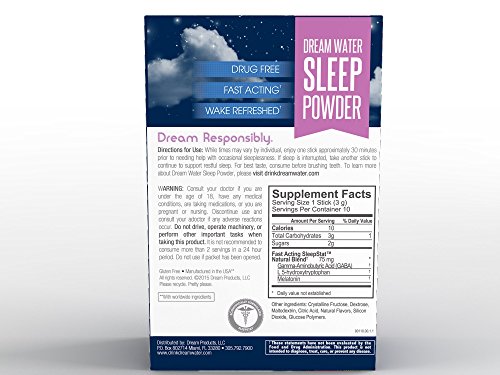 - Feature : Natural, 0-calorie, POWDER sleep aid, helps you wake up feeling rested and rejuvenated / As your new bedtime and travel companion, Dream Water Sleep Powder can help you get your at home, on the road, or in the air / A FAST-ACTING powder supplement form for better nutrient absorption, NON-HABIT FORMING, natural alternative to prescription or over-the-counter pills / Proprietary Sleep Stat Natural Blend of GABA, Melatonin, and 5-HTP is an OU Certified Kosher, Gluten Free, Powder Sleep Aid / Convenient and easy to carry, take Dream Water Sleep Powder with HOT water, COLD water, or NO water to help you relax, go to sleep and to wake up without the morning after grogginess!