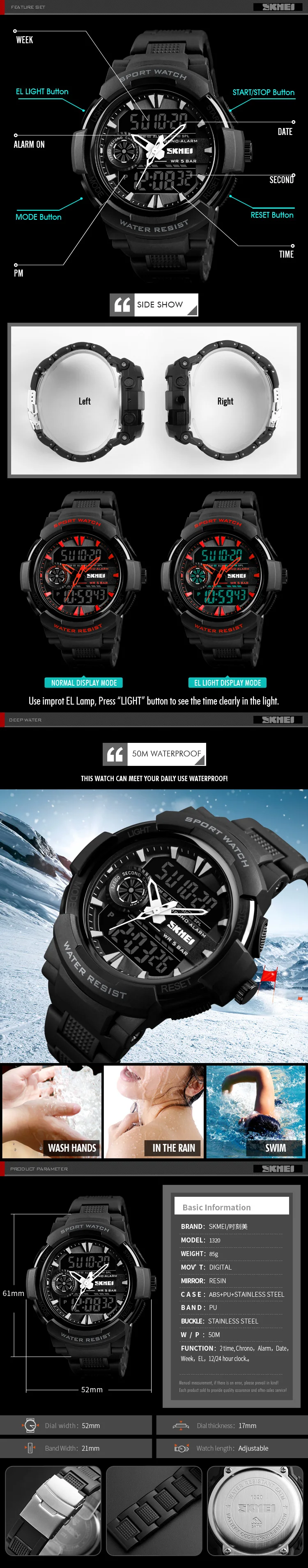 Feature:Water Resistant,LED display,Stop Watch,Auto Date,Complete Calendar,Back Light,Week Display,Alarm,Chronograph