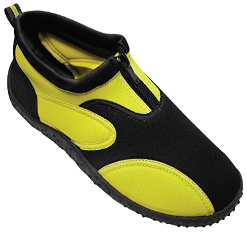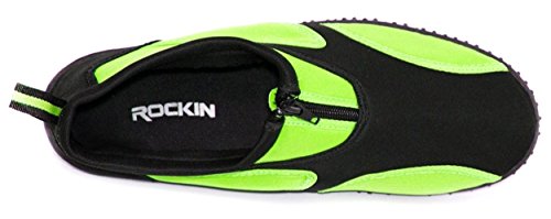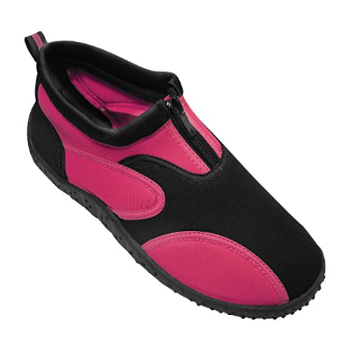 Studio : Rockin Footwear Publisher : Rockin Footwear Binding : Apparel Product Description These Aqua Fire Water Shoes from Rockin Footwear are the ultimate in comfort and water wear style. Lightweight and comfortable, the design features two-tone paneling and an extra thick durable rubber sole for those rocky river hikes. Slipping these on or off is a breeze with the zippered front and finer loop heel. Available in women's sizes 5-10. 0