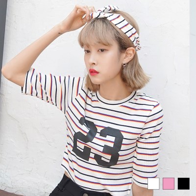 스판감 좋은 크롭 티셔츠로편안하게 착용가능한 아이템이에요!