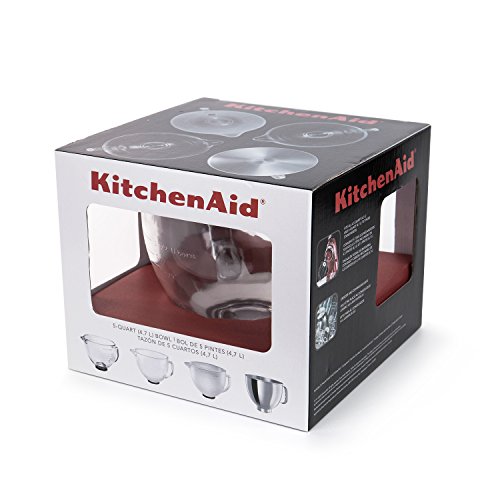 Studio : K5GB Publisher : K5GB Binding : Kitchen Product Description Color: clear Elegant transparency, meets the highest quality with the new 5-quart glass bowl, which was developed exclusively for your KitchenAid stand mixer.Whether you melt chocolate or chilli butter, this glass bowl can be conveniently used in the microwave or freezer, allowing you to do more with less tidying up.This timeless design includes a spout, handle and measuring strip for easy operation and includes a specially designed lid that is dishwasher safe and can be stored on the bowl when not in use.The glass bowl fits all tilting head models except the Accolade model.Does not match the Bowl-Lift mode 0