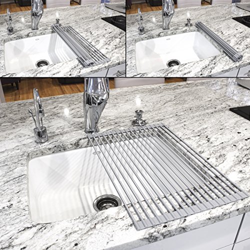 -. Title : Sorbus Roll-Up Dish Drying Rack | Over the Sink Drying Mat,- Multipurpose Dish Drainer - Fruits And Vegtable Rinser - Durable Silicone Covered Stainless Steel Large 20-1/2"L x 12-3/4"W (Warm Gray)