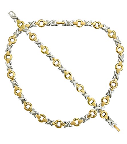 -. Feature : Metal: stainless steel / Size: 10mm wide / Length: Necklace: 17.5" Bracelet: 7.5" / Links: XOXO two tone