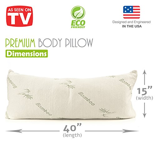 -. Brand : Premium Bamboo Pillows -. Color : White With Green Print -. EAN : 4801635982558 -. Feature : Bamboo Body Pillow Dimensions - 40" Length x 15" Width x 5" Height (inches). / Inside Materials - Best Quality 100% New Shredded Memory Foam. / Outside Materials - Ultra Soft 20% Polyester and 80% Bamboo Hypoallergenic - Perfect for allergy sufferers, Dust-mite resistant. / Removable Zipper Cover - very easy to clean. Cover is machine washable with a very easy to remove zipper. / FREE GIFT - 3D Sleeping Eye Mask with durable adjustable strap, providing suitable fits. Relax in any time, ideal for naps or travel. -. ProductGroup : Home -. ProductTypeName : HOME_BED_AND_BATH -. Size : 40" x 15" x 5" (LxWxH) -. Title : Premium Bamboo Body Pillow Shredded Memory Foam - Pregnancy / Maternity Pillow 40"x15" - Removable Zipper Cover Hypoallergenic Pillow with Carrying Bag Included 3D Sleep Mask