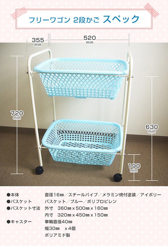 脱衣カゴ,フリーワゴン,2段,ランドリーバスケット,洗濯用品,かご,バスケット,2段ラック,