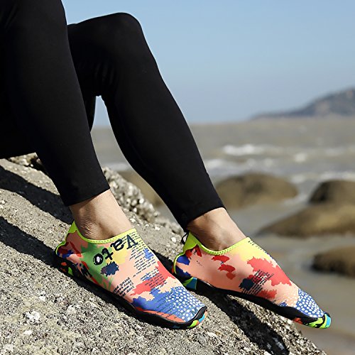 Product Features: Stretchy Upper: Super stretchy material offers incredible breathability and quick-dry property, and wraps your feet tightly without uncomfortable feeling of pressure. Convenient: Ultra-Lightweight and compressible, handy to carry. Slip-on style convenient to take on and off. Perfect Multifunctional Shoes: Fit for surfing, beach volleyball, Yoga, river trekking, sailing, swimming, boating, kayaking, windsurfing, cycling, jogging, walking, weight training, fishing, car-washing and other sports activities.