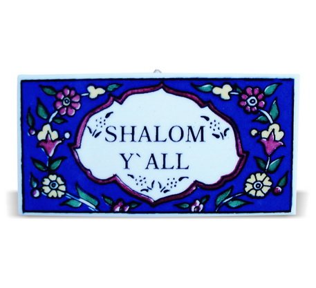 7x15 Blue Ceramic Armenian Designed "Shalom Y'All Door Plaque