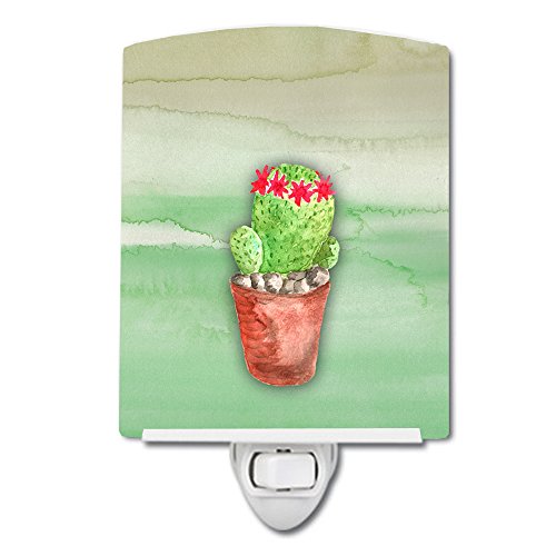 Caroline's Treasures Cactus Green Watercolor Ceramic Night Light, Multicolor, 6x4