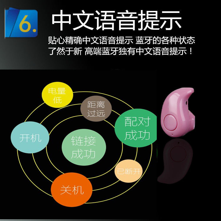 5)Voice report number, low power remind,Connect/disconnect remind,Boot off prompts.