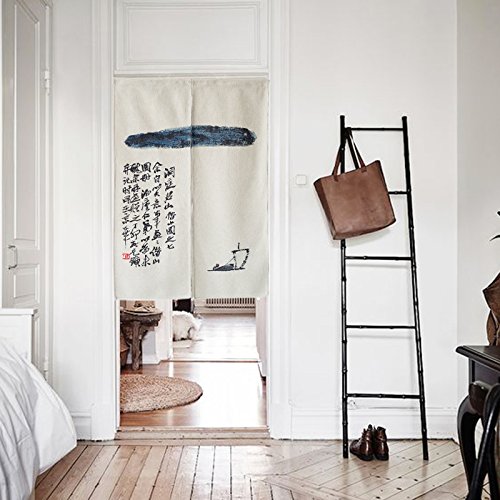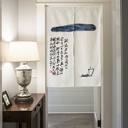 KARUILU home Japanese Noren Doorway Curtain Tapestry with Zen Cloud 33.5" Width x 47.2" Long … (A boat)