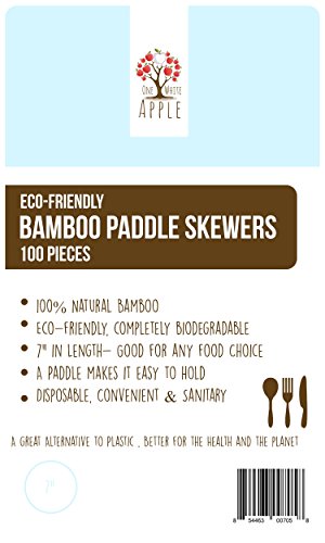 Better for the environment than plastic, Completely Biodegradable. Eco friendly Bamboo Paddle Skewers, Cocktail Picks: 100 Pieces Use for: BBQ, Grilling kebabs Pierce burgers, sandwiches, sliders, Fruit sticks, Chocolate Fountain/Fondue, Cocktails, Appetizers, Desserts Measure: 7" in Length Material: Made of 100% Bamboo Non Toxic: no plastics or harmful chemicals Utelise for: - Restaurant, Catering or Home settings