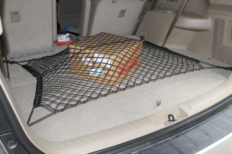 2. Material: nylon mesh. With two stretch. Four self-locking plastic hooks. Trapezoidal design. Suitable for all car trunk! With this before, never left the trunk of debris rolling collision. Practical equipment.