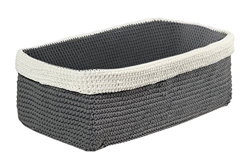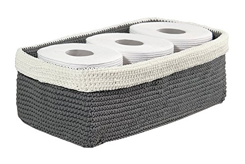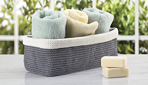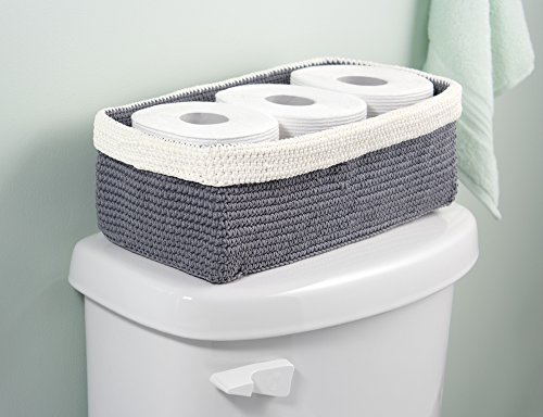 mDesign Knit Bathroom Storage Organizer Bin for Books, Toilet Paper, Hand Towels - On the Tank, Gray/Ivory