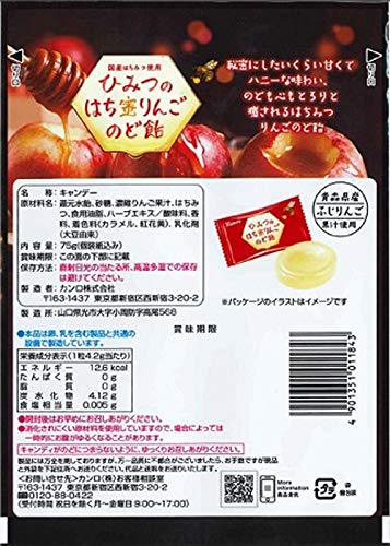 原材料:還元水飴、砂糖、濃縮りんご果汁、はちみつ、食用油脂、ハーブエキス/酸味料、香料、着色料(カラメル、紅花黄)、乳化剤(大豆由来)