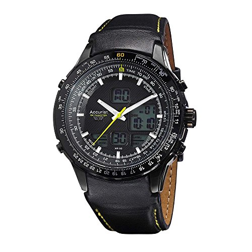 Accurist Skymaster Herren Analog/Digital-Armbanduhr mit schwarzem Lederband ms930by