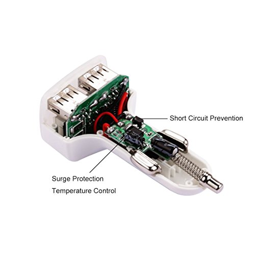 FAST DUAL USB CHARGING PORTS - Combined 3.1 amps; 10W; uses smart technology to ensure each device pulls the right amperage. Charger is powered by the vehicle's cigarette lighter. Equipped with Over-charge Protection. (Auto power off when input/output is greater than safety current, protects against over-heat, over-current and over-charging.)
