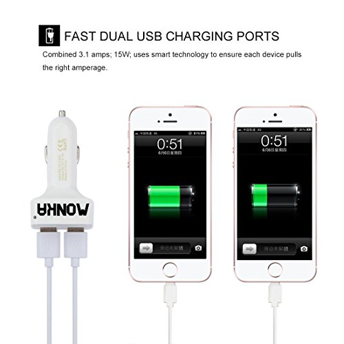 MONKA@4in1 Dual USB Car Charger with iPhone 6, 6 Plus, 5s, 5c, 4s, 4, iPods,iPad,Samsung Galaxy Note4 5 S4 5 Cell Phones,GPS,Tablets,Other USB-charged Devices
