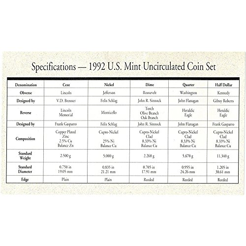 1992 P & D US Mint 10-Coin Mint Set Uncirculated