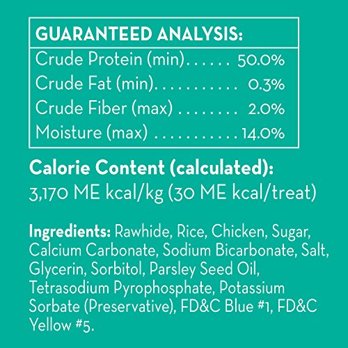 -. Feature : Helps fight stubborn plague and tartar buildup through the natural action of chewing / Great for all dogs / Real chicken in the middle / Packaging may vary