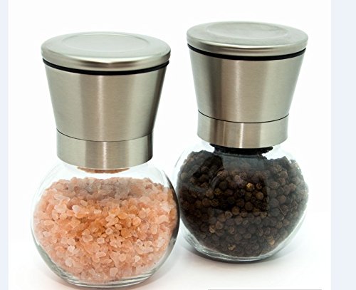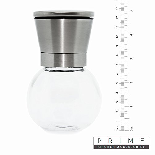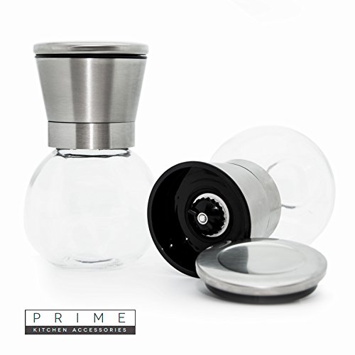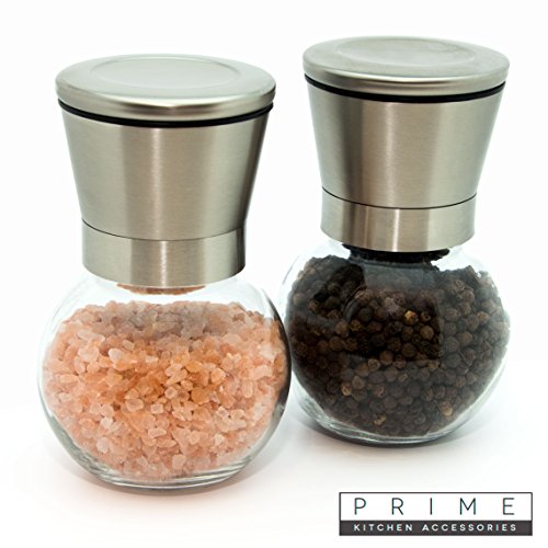 Premium Stainless Steel Salt and Pepper Grinder Set (2 in Set) with Adjustable Coarseness By Prime Kitchen Accessories Made with High Strength Glass Body Shakers No BPA