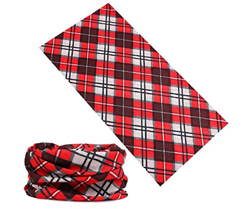-. Title : Red Plaid Seamless Tube Neck Warmer Face Mask Headband Bandana Motorcyle Biker